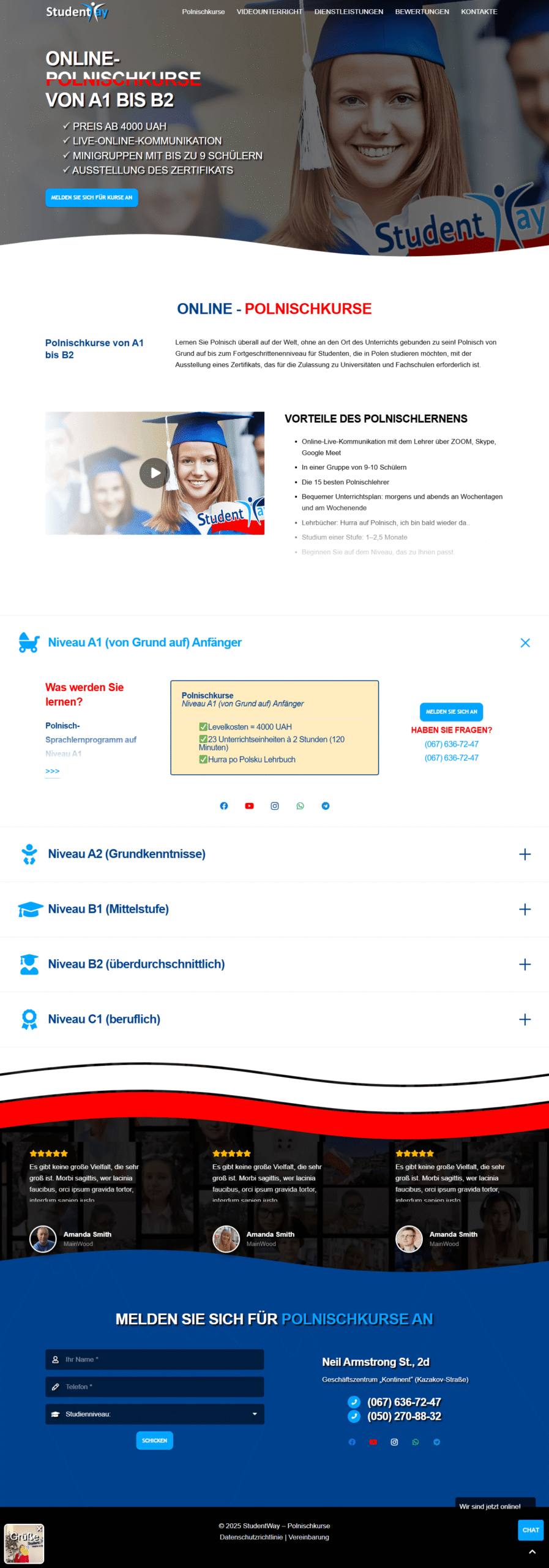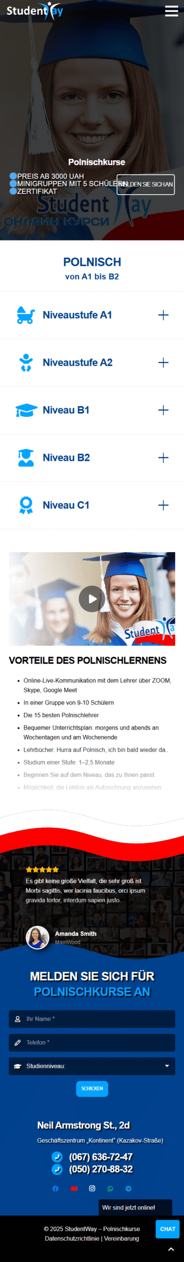 WEBSITE LANDING PAGE WORDPRESS: Online- Polnischkurse von A1 bis B2. StudentWay Landing Page Online Polnischkurse